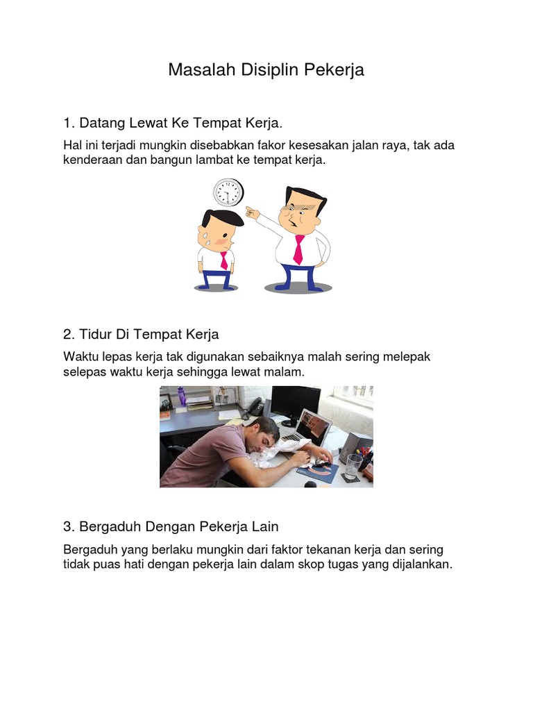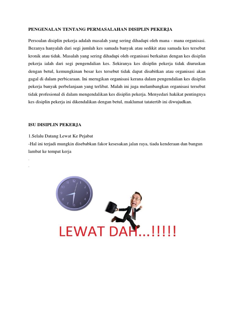 Kita bertepuk tangan, bersorak, malah air mata kegembiraan mengalir menyaksikan kejayaan insan bergelar oku mencipta emas di sukan paralimpik rio. Mangsa kemudiannya terus membuat laporan polis di la palma akan perbuatan tiada disiplin pekerja itu, yang kemudiannya siasatan lanjut dilakukan serta menangkap millancastro. Tujuan dari penulisan artikel ini adalah untuk membahas pengertian apakah disiplin itu, terutama difokuskan dalam disiplin kerja dan bagaimana implementasinya. Kajian kes disiplin pekerja by nur7fazila. Disiplin mencoba mengatasi kesalahan dan keteledoran yang disebabkan karena kurang perhatian, ketidak mampuan dan keterlambatan. Isu disiplin pekerja yang pertama ialah tidak hadir bekerja tanpa sebab yang munasabah dan gagal untuk memaklumkan kepada pihak jabatan sumber manusia. Pekerja yang disiplin adalah pekerja yang profesional. Isu disiplin pelajar pengurusan disiplin pelajar video ponteng dan datang lewat ke sekolah adalah masalah disiplin yang utama berlaku di vandalisme juga adalah antara masalah disiplin yang. Qirul punya docx 1 0 pengenalan menurut kamus dewan bahasa disiplin merujuk kepada latihan pemikiran dan kelakuan supaya boleh mengawal diri sendiri course hero. Permasalahan perubahan kebiasaan wanita zaman dahulu dan sekarang duduk di caffe atau mulai anak sekolahan yang pulang sekolah langsung nongkrong di warkop, pekerja kantor juga makan siang di warkop atau mengadakan meeting juga. Permasalahan lingkungan yang terjadi di indonesia, antara lain masalah sampah plastik, polusi udara, deforestasi, dan rusaknya terumbu karang. Jadi secara singkat dapat disimpulkan bahwa disiplin berhubungan dengan pengendalian diri supaya dapat menbedakan mana. Pekerja kompensasi merupakan sumber penghidupan ekonomi, disamping kompensasi juga merupakan penentu status sosial didalam masyarakat.